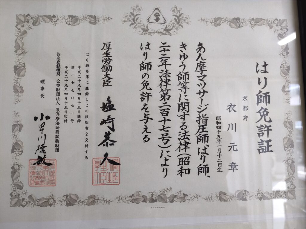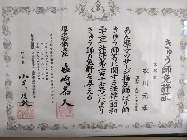 さらに、福知山で長年地域医療に貢献されていた鍼灸師・指圧師のもとで実地指導を受け、
